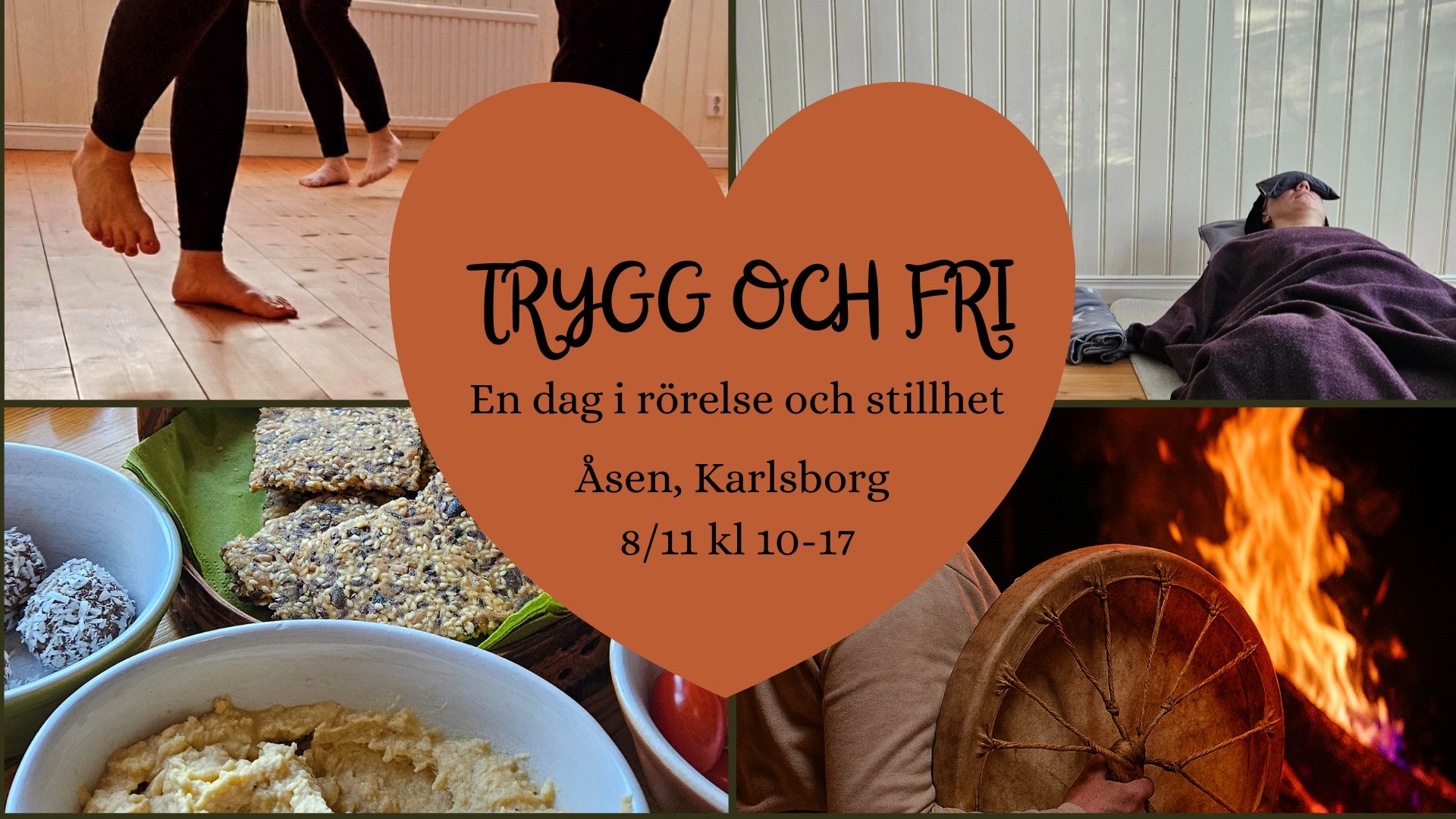 Trygg och fri -En dag i rörelse och stillhet. En möjlighet att landa mjuk och tryggt i din kropp och själ , kanske släppa något som tynger och hindrar ditt livsflöde och ge plats för dig att leva ditt liv lite friare.
